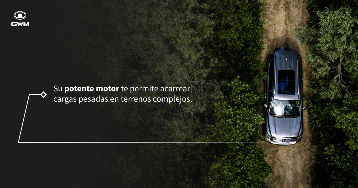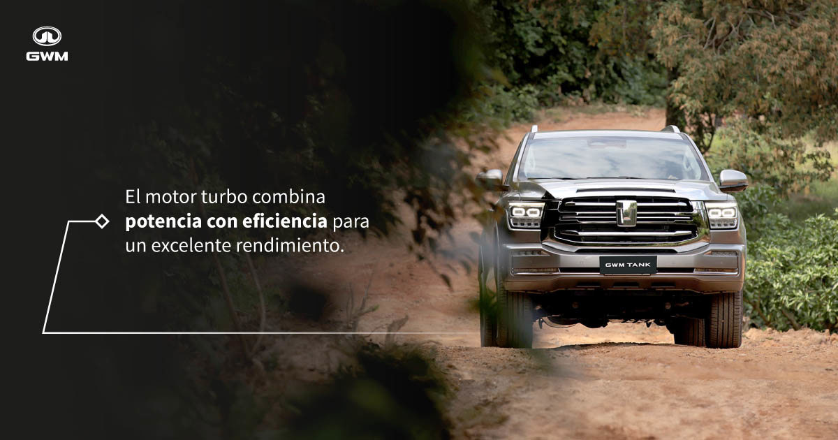 El Tank 500 incluye un motor V6 turbo de 3 litros le entrega una potencia de 349 caballos de fuerza, para llevarte a donde necesites.