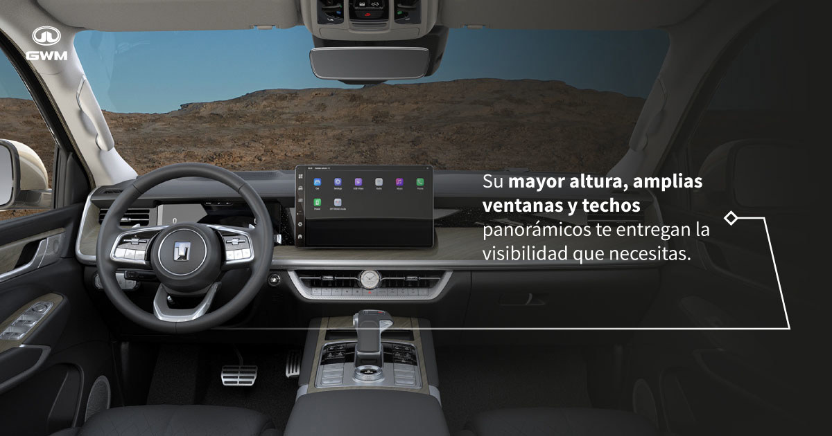 El Tank 500 combina su altura con techos panorámicos para entregarte toda la visibilidad que necesitas.