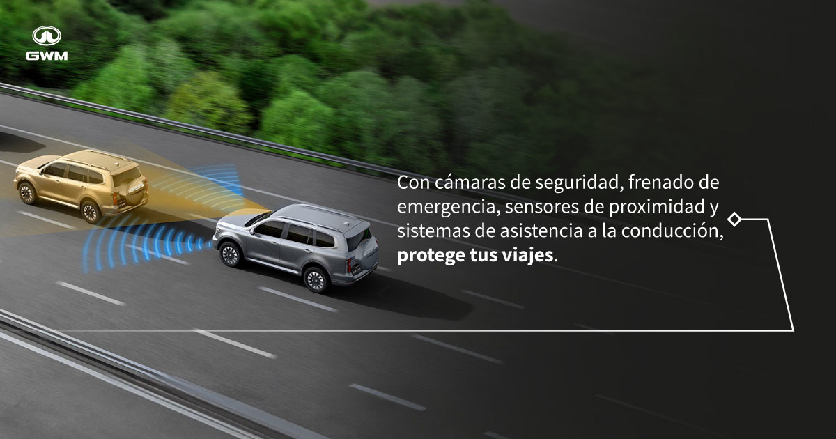 Al estar pensados para trasladar un gran número de personas o cargas pesadas, los SUV vienen con sistemas de seguridad avanzados. En el caso del Tank 500, su sistema de asistencia a la conducción te muestra los carriles, las líneas y los distintos autos que te rodean, gracias a sensores de aproximación en la parte delantera y trasera.